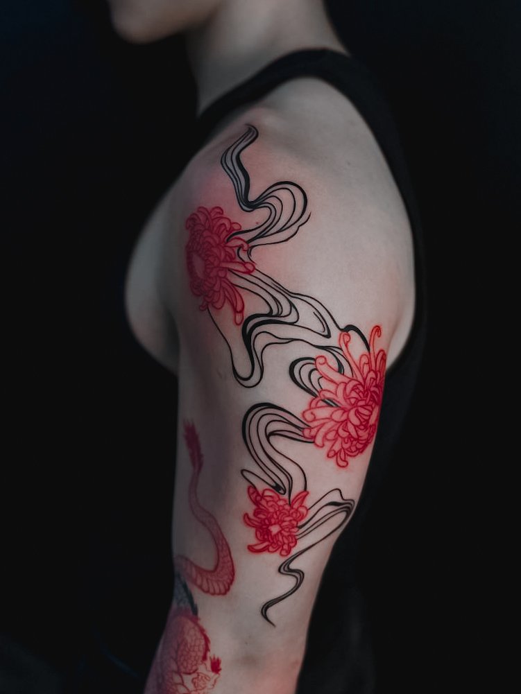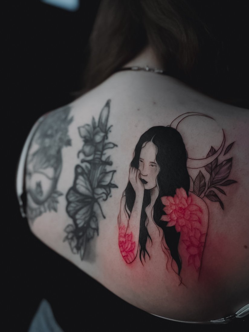 Hello. My name is Elvira, I am a tattoo artist. I have been working in this field since 2019. I work in such styles as: realism, geometry, line work, whipscaping, minimalism, old school, nuscule and Japanese style. I chose this field because I spend a lot of time drawing, and the process of work is very addictive. In my free time I like to shoot and edit videos, take photos, read a book with a cup of coffee, and travel. Sign up for a session with me, I will make your idea a reality. Sincerely your master Elvira