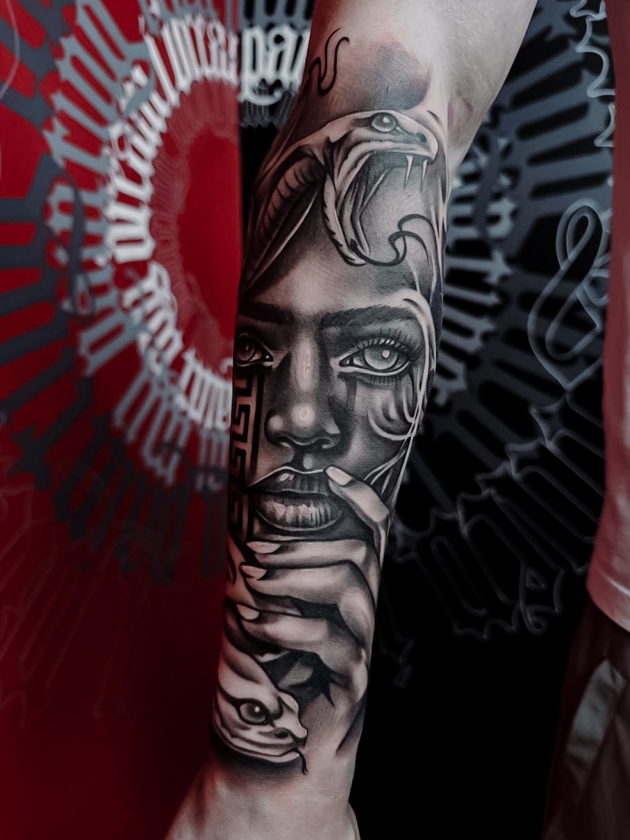 Hi! I’m a tattoo artist at VEAN Tattoo, and my main goal is to help you express yourself through the designs applied to your body. I always pay attention to details and ensure the client's comfort. It's important for me to hear your idea, refine it, and turn it into a work of art that represents your identity. Your tattoo is a part of your story, and I’m happy to help you tell it.