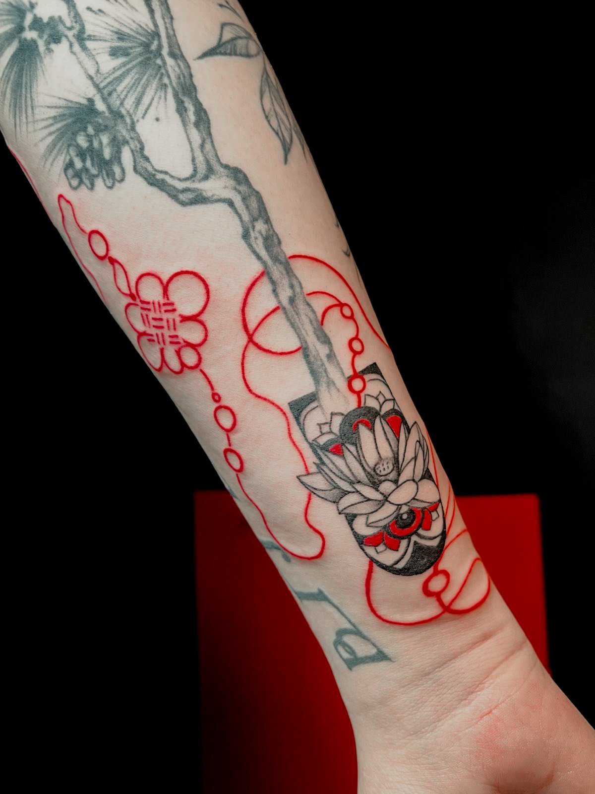 - crosses or prayer beads wrapping around the wrist - may reveal the religiosity of the tattoo holder;