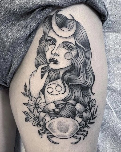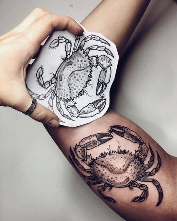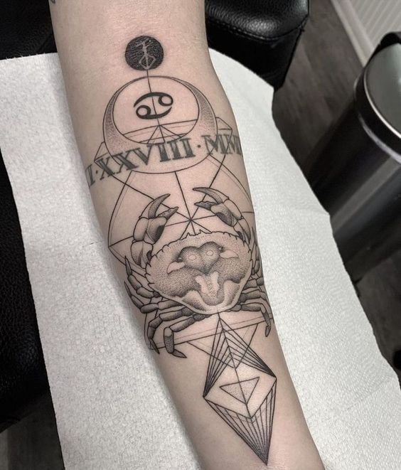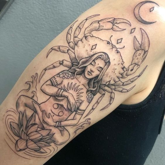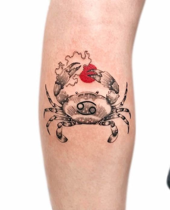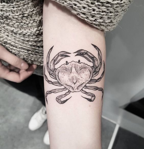 For Cancer tattoos, people usually choose one-colored sketches.