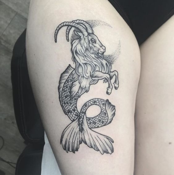 - Hip Capricorn tattoo: good location for large and expressive tattoos of different colors;