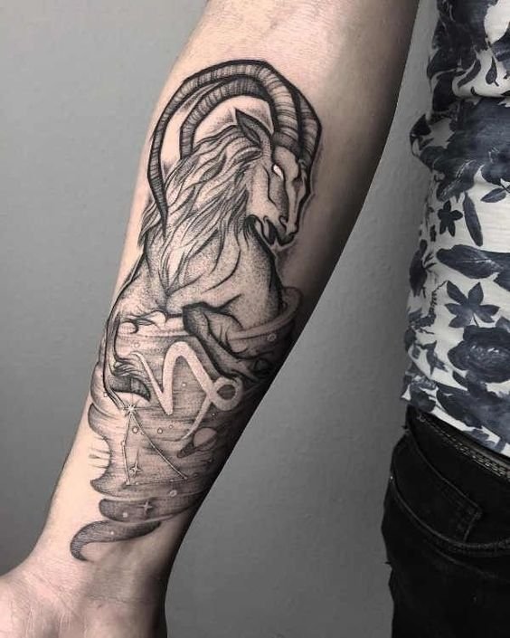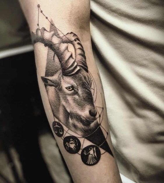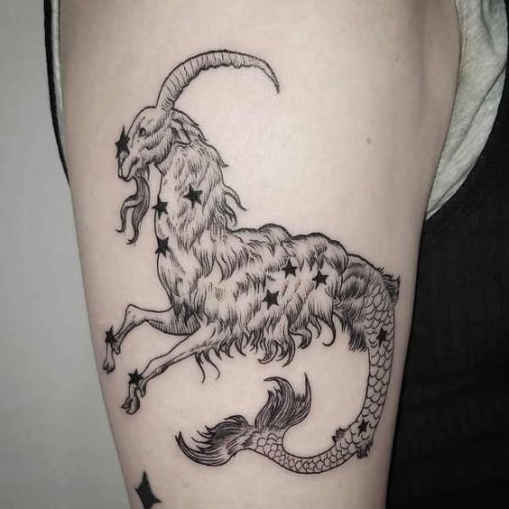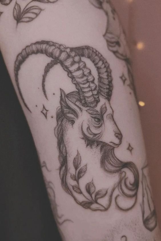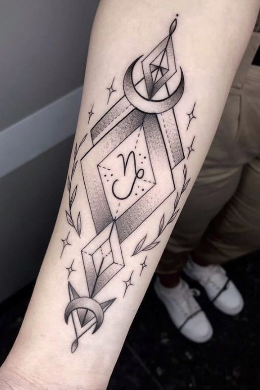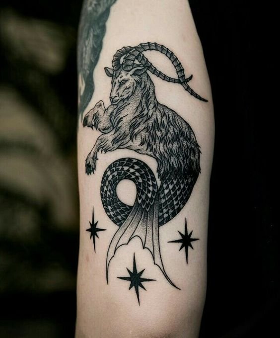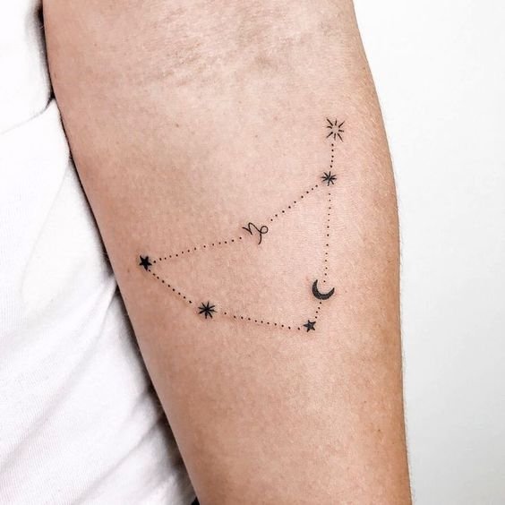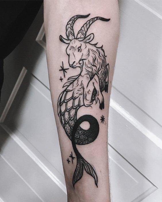 - To make an accent on your belonging to the Capricorn zodiac sign, you may add celestial elements: stars, planets, the moon, etc. Such a tattoo boosts the best traits of the character a person has according to the horoscope;