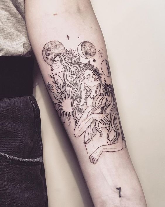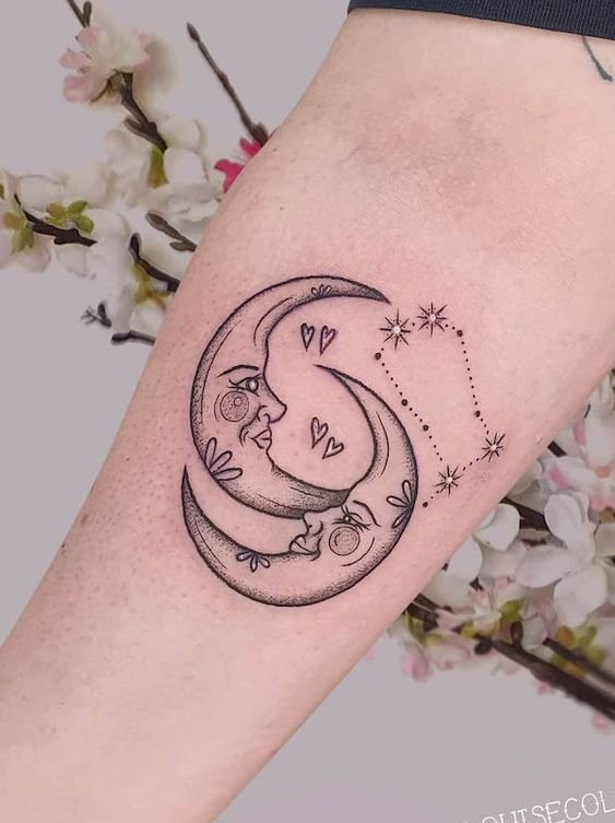 In most cases, the representatives of this zodiac sign choose exactly those symbols in their tattoo sketches. The admirers of minimalistic body pictures may also opt for various inscriptions like “Gemini” or their birth dates.