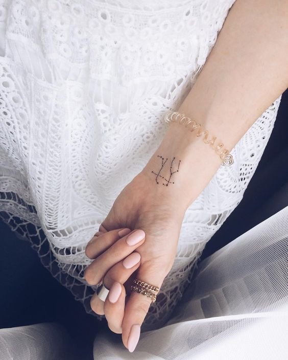 A Gemini tattoo on the wrist may symbolise lust for success and recognition. At the same time, it may help you develop the skills of prediction and find the right solutions in various life situations.