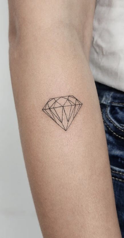 To create a unique tattoo, you can use such simple shapes as a diamond. The diamond-shaped body image of the crystal symbolizes purity, intelligence, transparency, strength and endurance. Diamond is considered one of the most common figures for creating geometric tattoos.