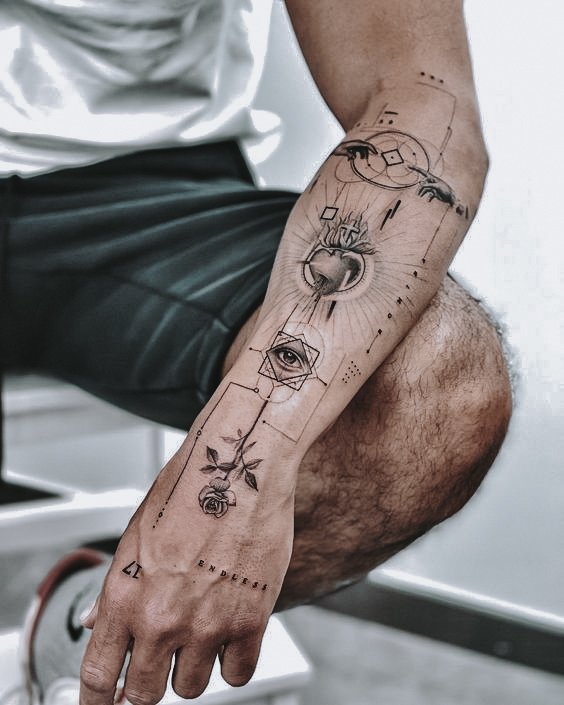 The world of tattoo art is not bypassed by geometry. This style is based on lines, curves, simple and complex shapes. Also, for complex and aesthetically attractive compositions, masters use additional elements.