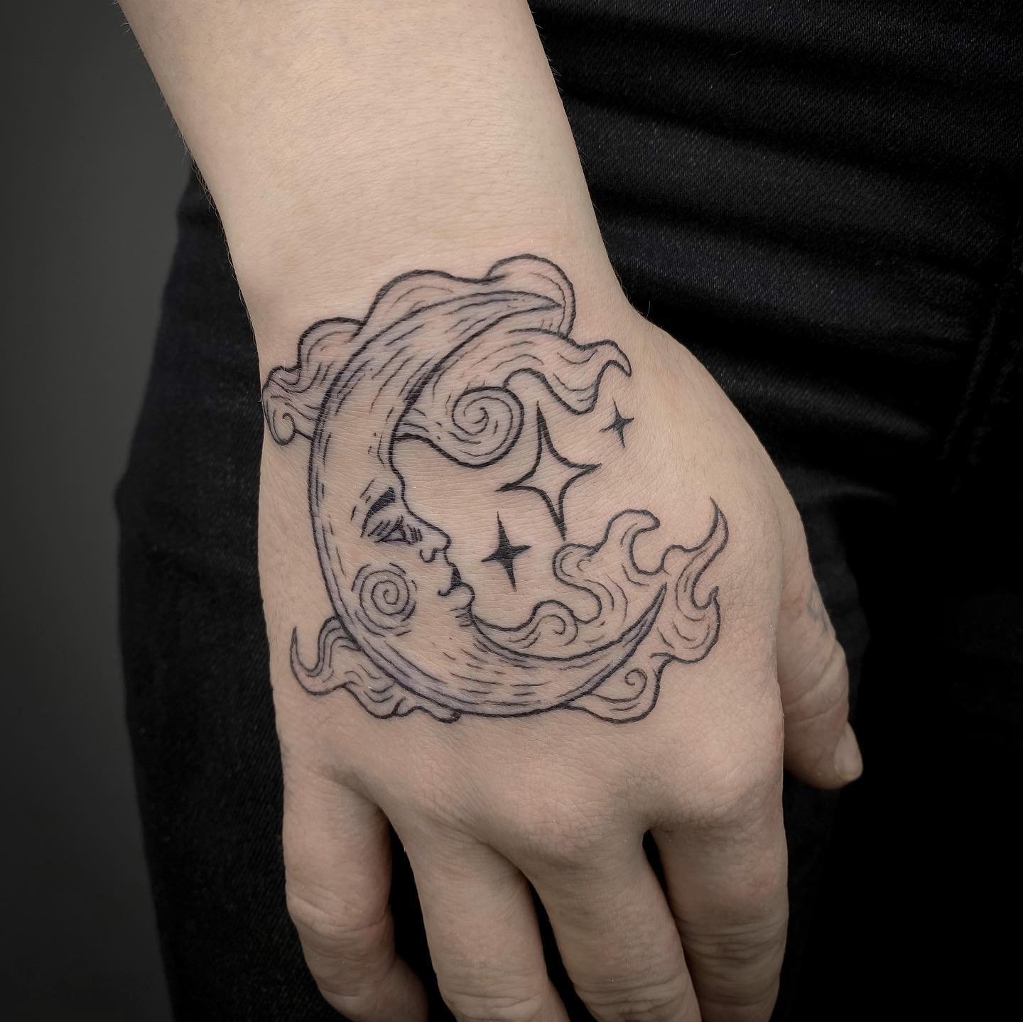 However, simple tattoos on the hand are not as popular as massive ones on the entire back of the hand.