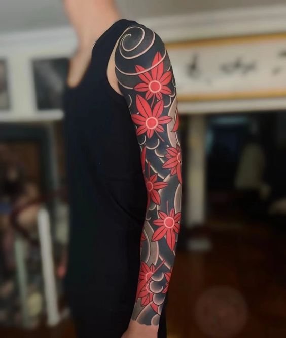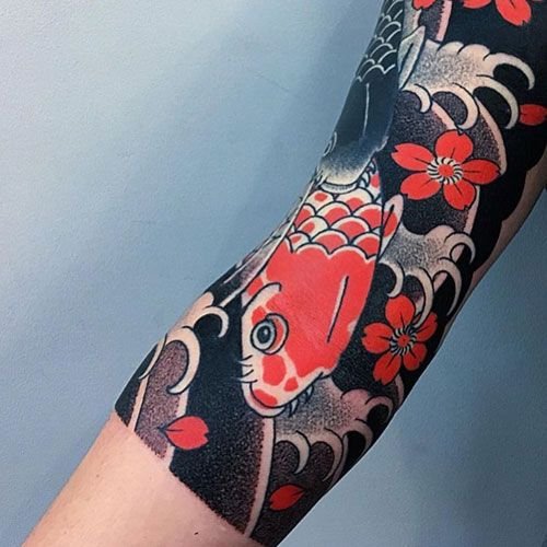 - It is important in Japanese culture, symbolizes happiness, passion, life. In art - a symbol of protection from evil spirits. Therefore, often tattoos in Japanese style have a lot of red ink.