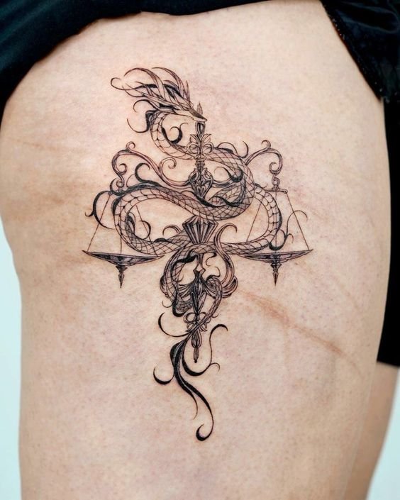 - Thigh Libra tattoos;