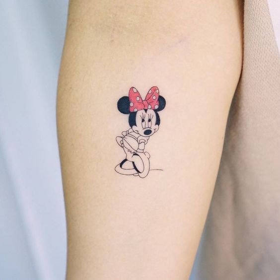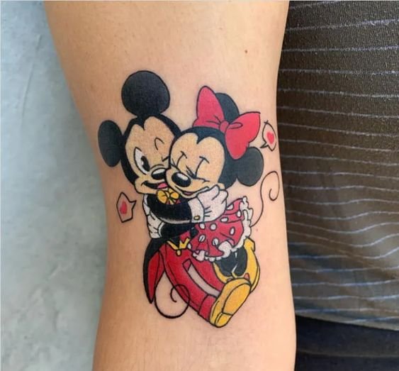 In most cases, people want to get Mickey and Minnie tattoos to inherit some of their traits. They believe that body illustration can serve as a reminder to behave in certain situations.