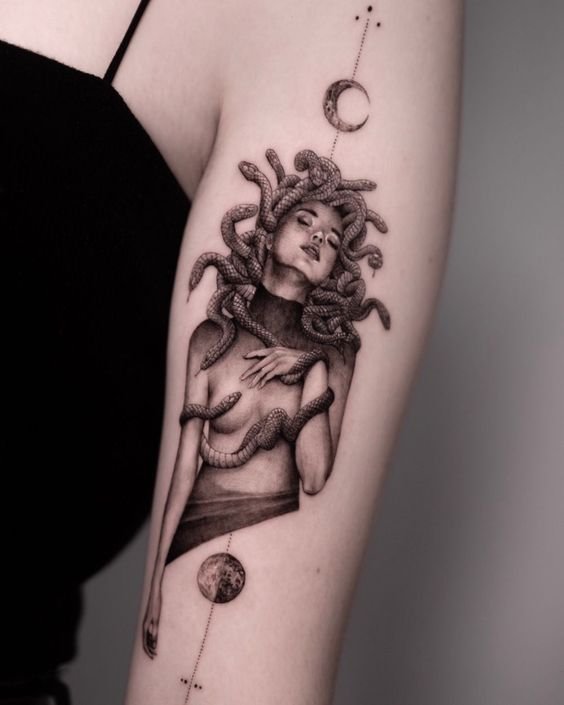 And vice versa, for skinny women it’s better to have massive tats, because it will make them look more powerful. Here some examples: