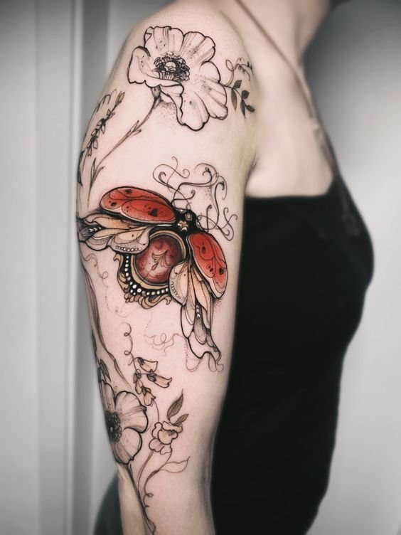 Quite common is the image of insect on women’s shoulder. Each of them has its own specific meaning and allows you to convey the character of its owner. Most often, girls choose such insects:
