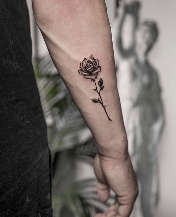 - A traditional red or black rose is usually associated with love, passion, sensibility, and hope. For that reason, this flower is popular for making matching tattoos. At the same time, the rose image with a stem shows the willpower and firm character of the tattoo owner.