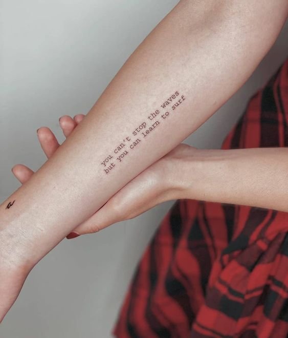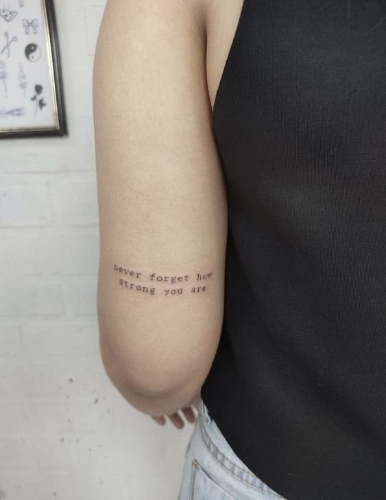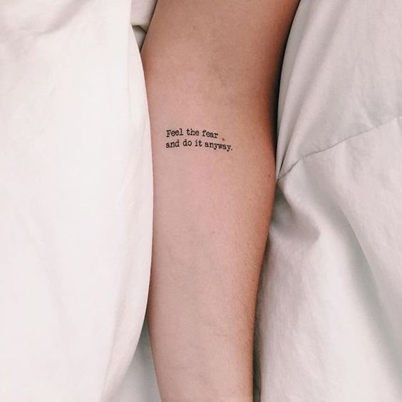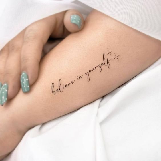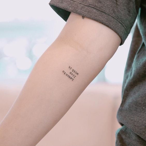 First of all, it is important not pay attention to the font, size or coloring, and it is important to understand the content of the phrase. As a rule, the inscription on a person’s body is a reflection of his/her views on life, inner feelings, emotions and values. When choosing a quote, a person demonstrates own life principles not only to him/herself, but to the whole world. The inscription should fully fit a person, reveal inner world, demonstrate own attitude to any things, feelings or to life. And after choosing a suitable phrase, you can think about the font and color theme of the tattoo.