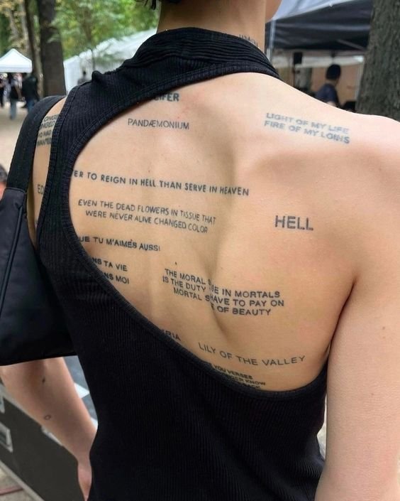 People get word-combinations, poems, foreign phrases and even entire texts on their body.