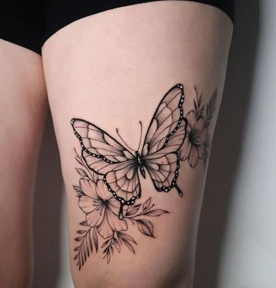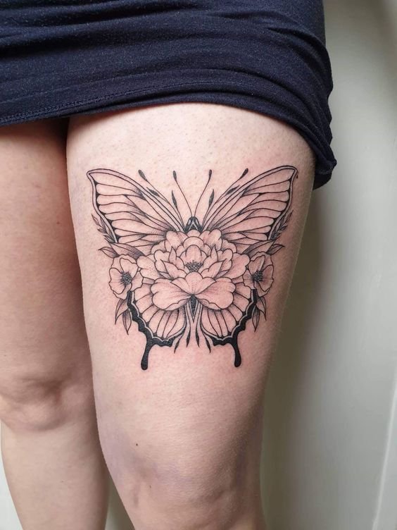 Butterflies are mysterious creatures that go through 3 different life conditions. For that reason, they are believed to be a symbol of reincarnation and the beginning of a new life. Butterfly thigh tattoos are popular among women who want to bring positive changes to their lives or just start a new chapter in their careers or private affairs.