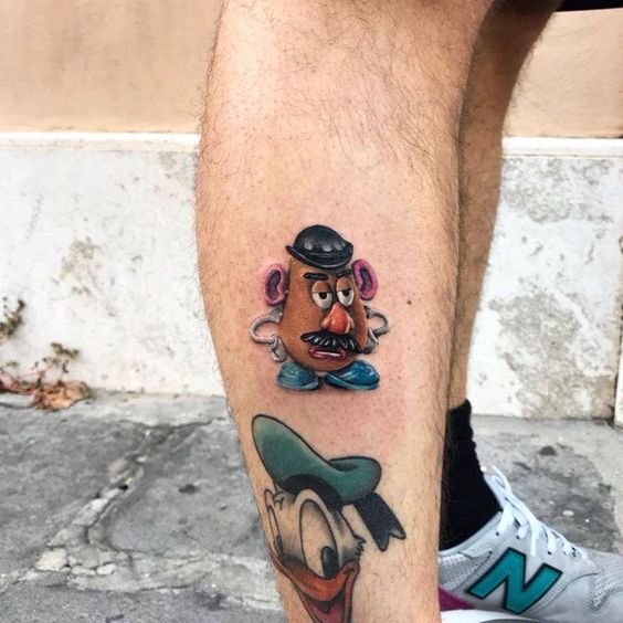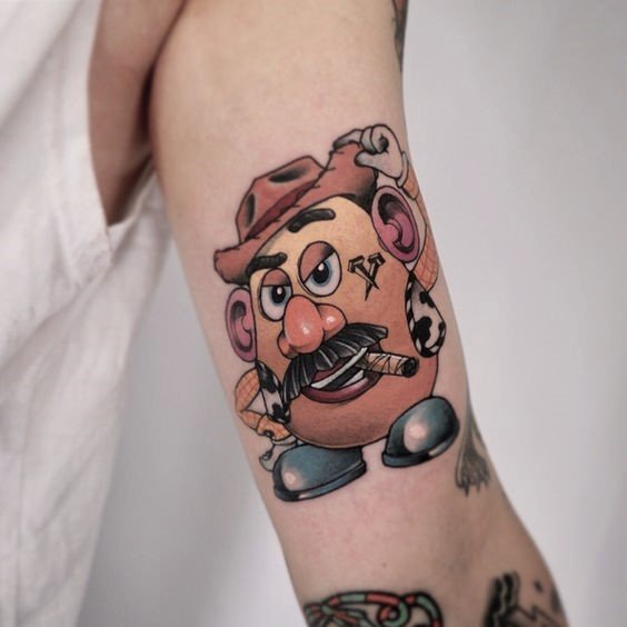 And for the bravest of you, we recommend considering getting a Mr. Potato Head tattoo. This iconic character may be used as a tattoo sketch for people of all ages. What’s more, this tattoo is unique and will make you stand out from the crowd.