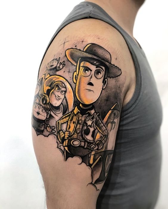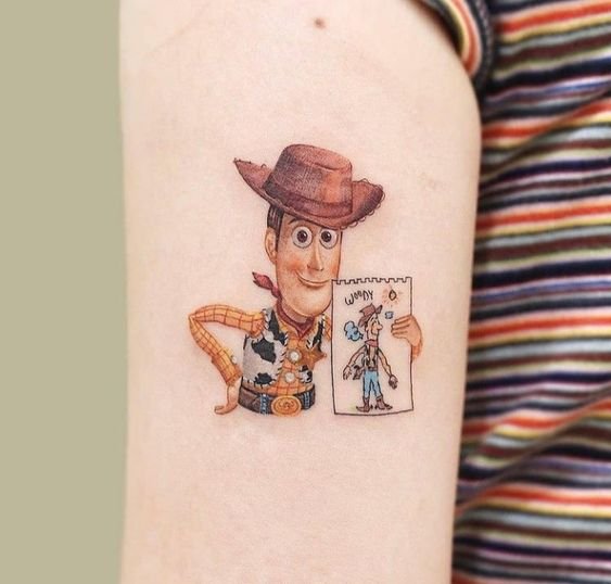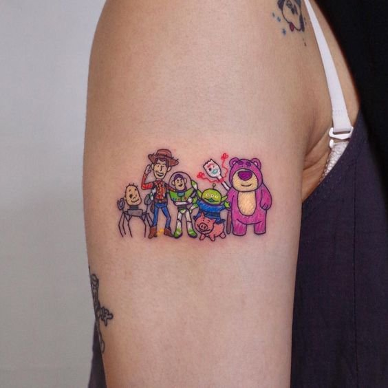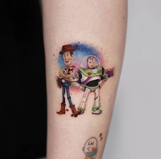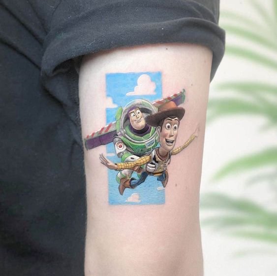 For a Toy Story tattoo sketch, people frequently choose the illustrations of their favourite characters.