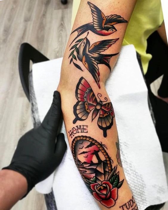 Traditional tattoos are fine thick lines, bright colors and clear design. The motifs used in traditional tattoos are often inspired by nature, folklore, and religion. These tattoos are timeless and have a charm that attracts people from all spheres of life.