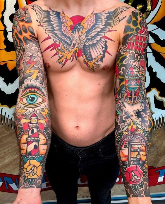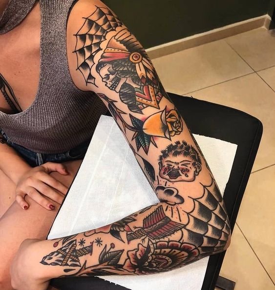 Although tattoos are now common in all spheres of life, as early as 200 years ago such a body image in America, where the traditional style originated, was extremely rare. More often than others, sailors and soldiers got such tattoos. Norman Collins, known in his professional life as a sailor named Jerry, was also a member of the Navy. He was one of the guys who not only described the tattoos, but made sketches of them. His later student, Don Ed Hardy, also contributed to educating people by describing the traditional style of tattoo.