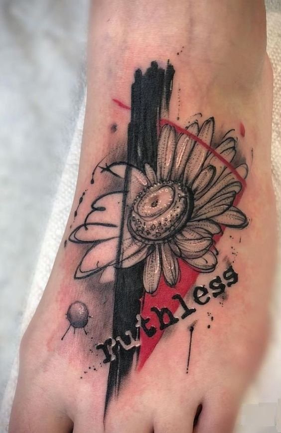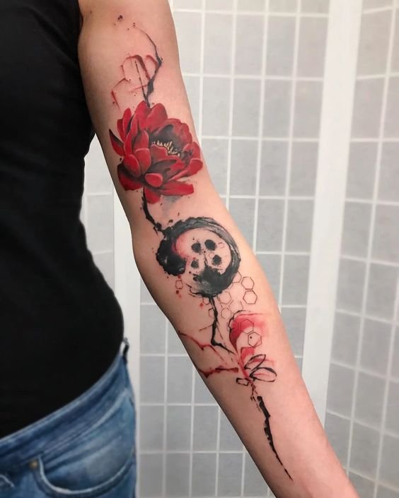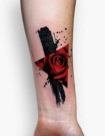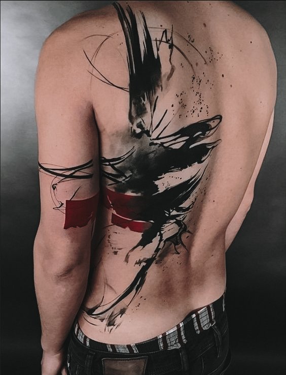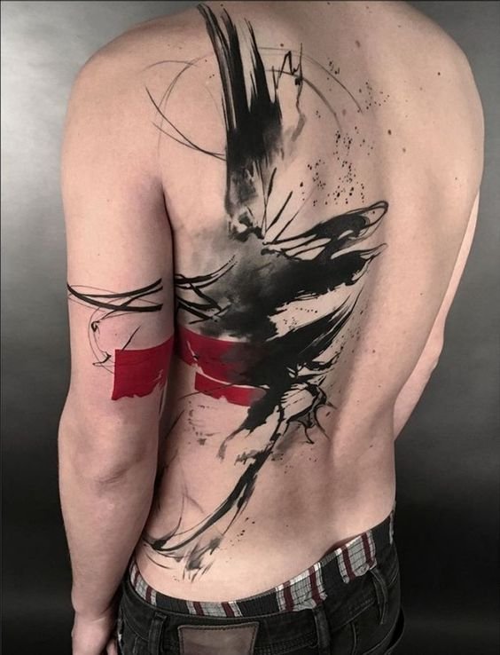 Critics have described this style of tattoo as a confusing combination of reality, surrealism, script, and abstract lines. But the authors themselves, mixing bold and thin lines, bright black and red strokes, graphics and photos, pursued a different goal. They gave all the extraordinary personalities the opportunity to tell a dramatic story in one picture. Using the art of color contrasts, the master can create beautiful visual effects. The style is bold, and the drawing, which is made of red and black colors, have a «just finished» fresh look, as if the artist has just finished the tattoo - the colors are still wet.