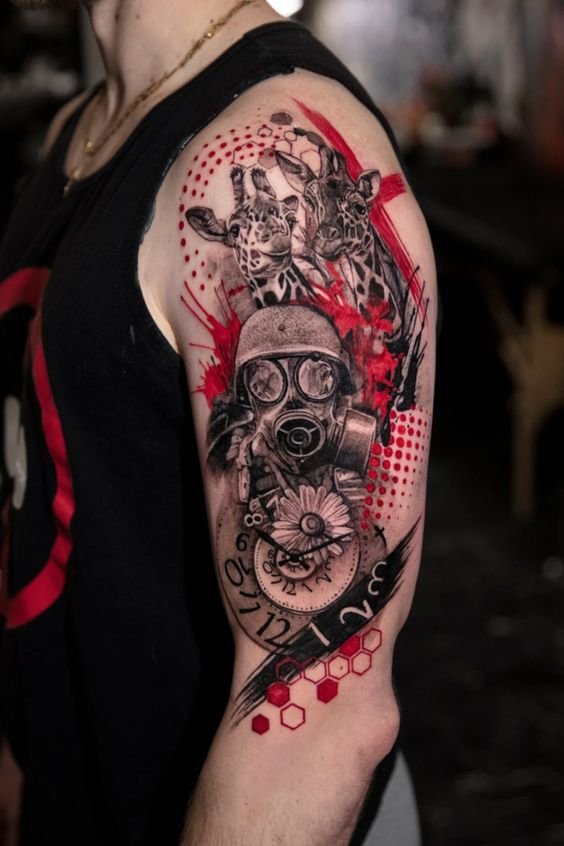 The options are endless when it comes to tattoos in the Trash Polka style. Among the popular motifs are: