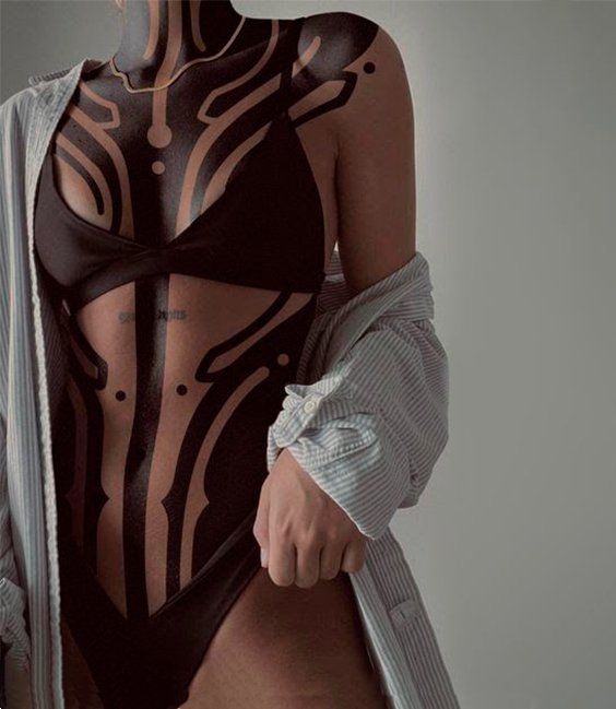 The main elements of the tattoo are black dots, lines, geometric shapes and repeating patterns. Modern tattoo artists combine elements of different cultures and combine them with new techniques and aesthetics, creating a unique mixture of traditions and modern art.
