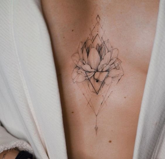 - Lotus Sternum Tattoo