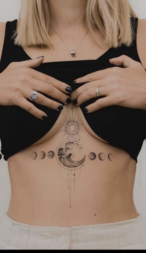 - The choice of designs is quite extensive. Under boob, both a miniature blackwork tattoo and a large realistic tattoo with many small details will look good. In addition, you can fill a pattern that goes down over the body