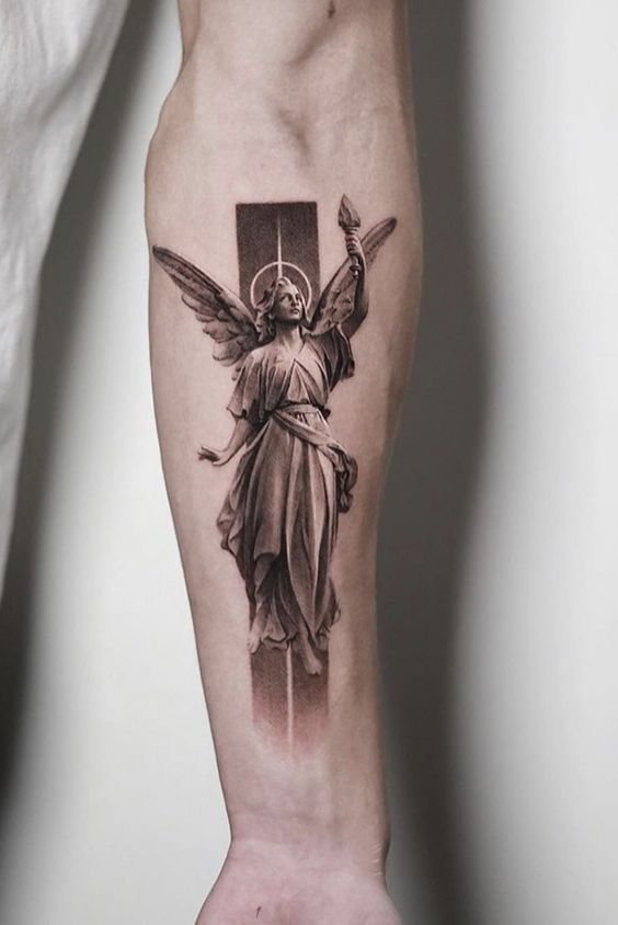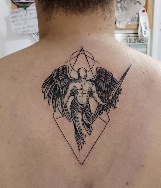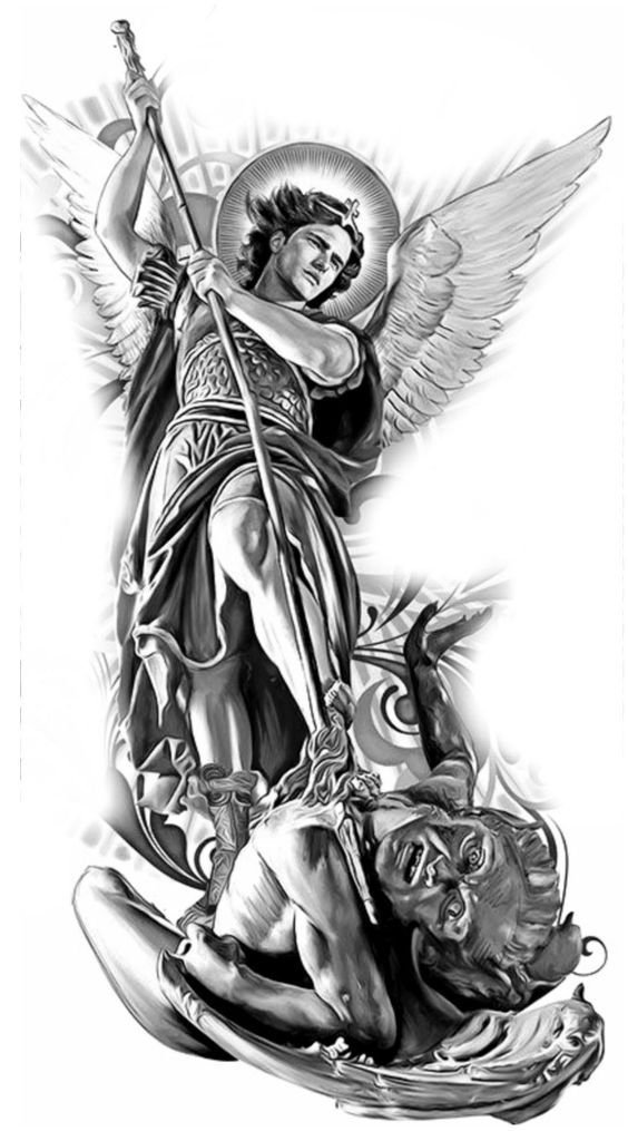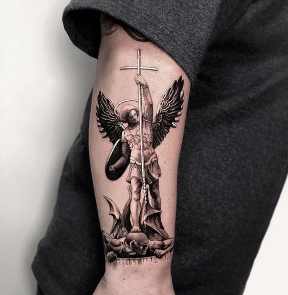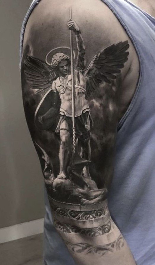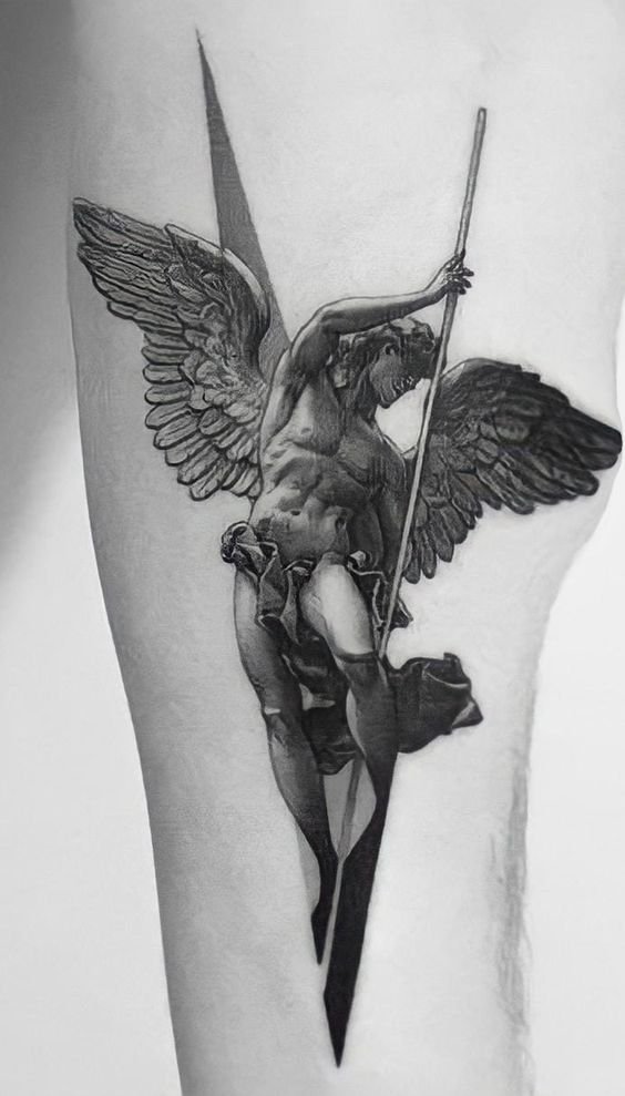 - Archangel. A warrior angel who is most often depicted with a spear or sword in his hands. The main message of such a tattoo is to fight the dark side. What it can be as a struggle with external factors, and the struggle with one’s self deep inside.