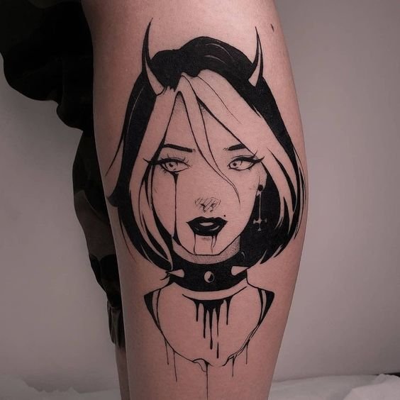 Anime tattoos are preferred by computer game lovers. The reason lies in the styling of computer characters. They all look like anime characters. You can make an entire universe for a character, play events. The flight of imagination is unlimited. The variety of genres gives you a choice for the imagination and personal interests. You will be helped with the choice of sketch and style.