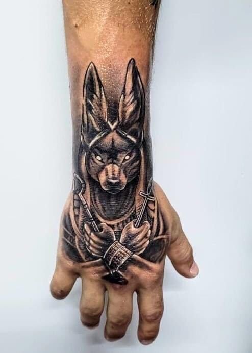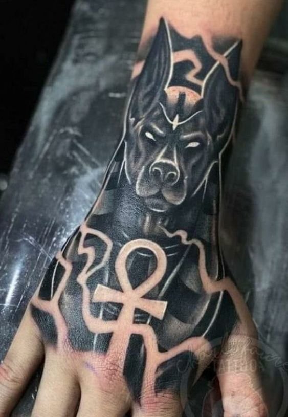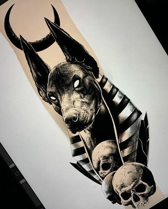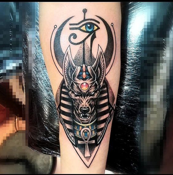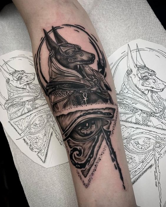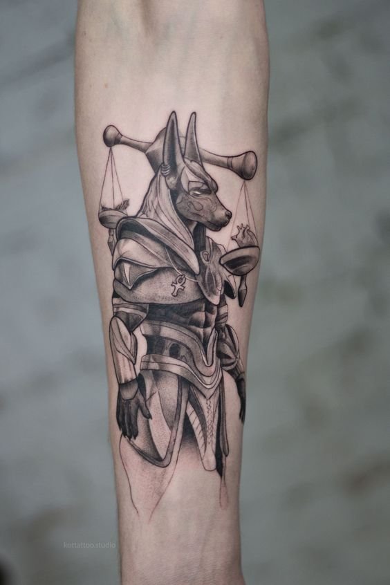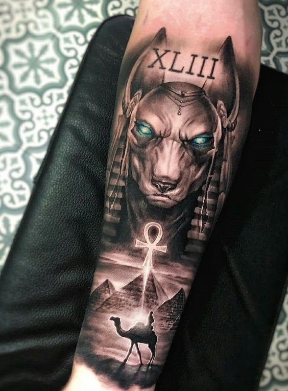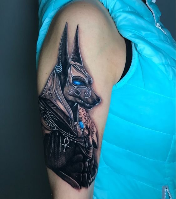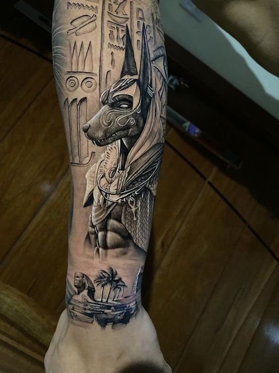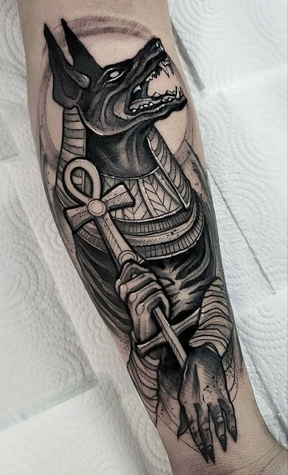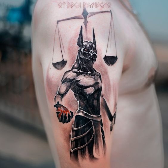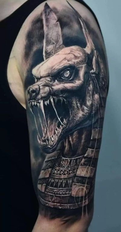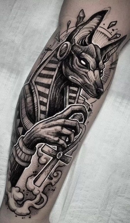 Anubis tattoo is regarded by men as a symbol of sacrifice, the balance between the dark and light side of the soul, the search for a true purpose.