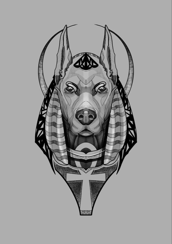 - Classical, in the form of a portrait - God Anubis in human form with the head of a dog using black and white shades. It will become an effective amulet and symbol of rebirth and power.