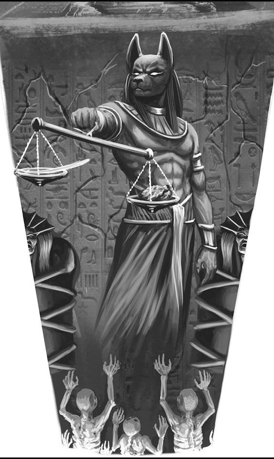 - Anubis and Ra - two completely opposite gods by vocation are created on the body to compare good and evil, positive intentions and deadly decisions.