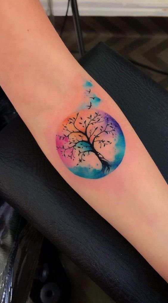 - Watercolor. The watercolor tattoo looks refined and airy. It is often supplemented by various elements - colors, birds or other symbols that are close to you and your family.