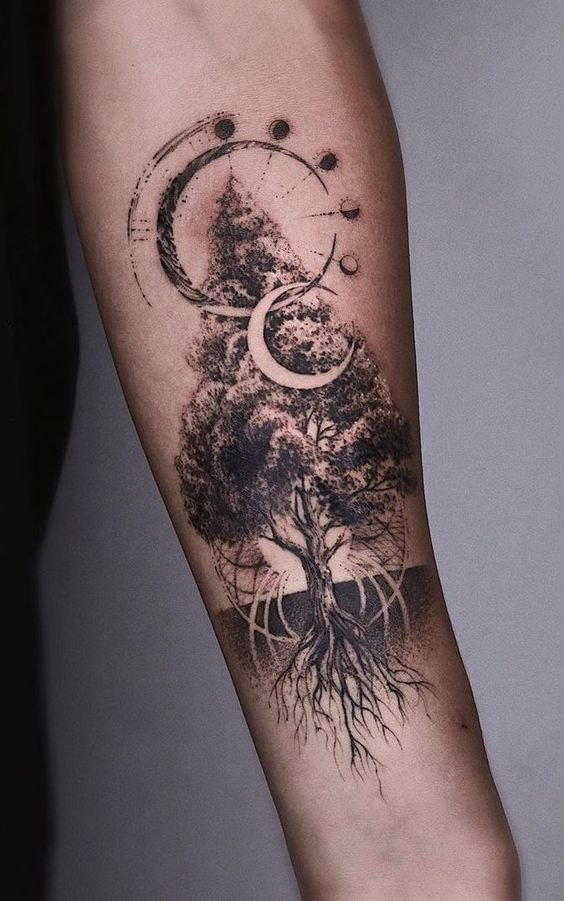 A tattoo depicting a family tree can be performed on different parts of the body, depending on the client’s preferences and the size of the composition.
