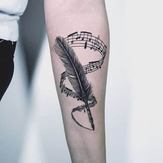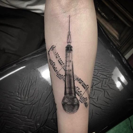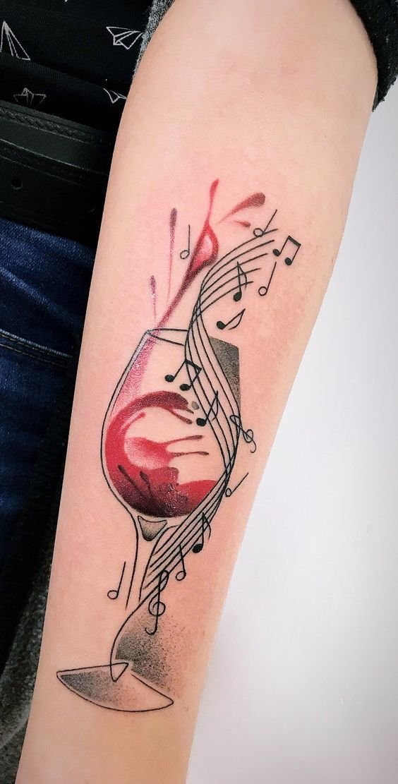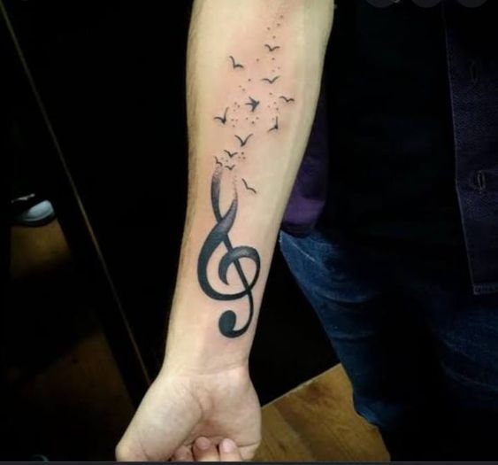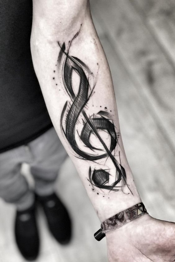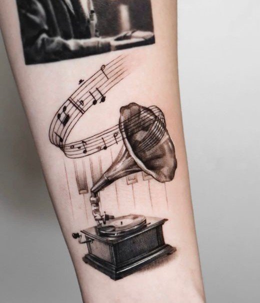 Musical body images reflect an emotional connection to the songs. Such tattoos remain relevant beyond time. If you want to make a tattoo that will look modern after 50 years or more, choose one of the design options.