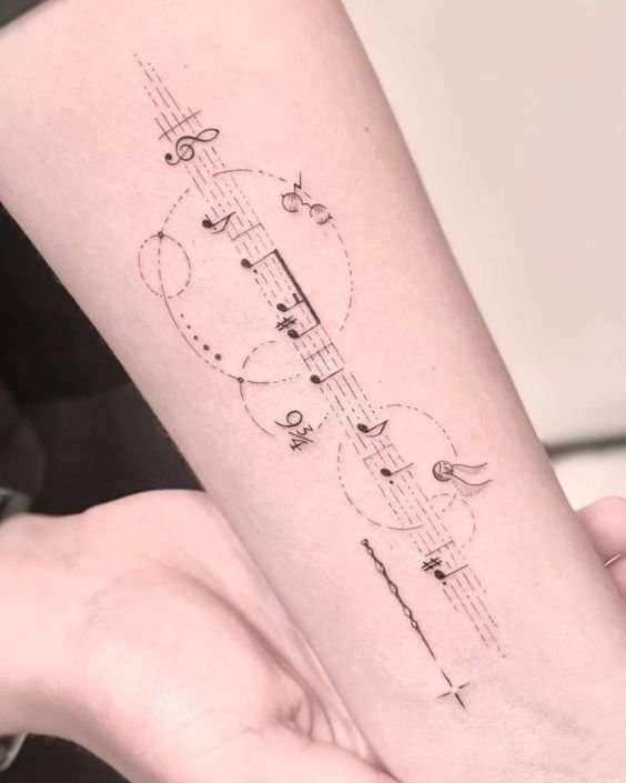 Each owner of the body image puts a special meaning. The Master finds optimal ways to implement the idea. Variants of music tattoo sketches: