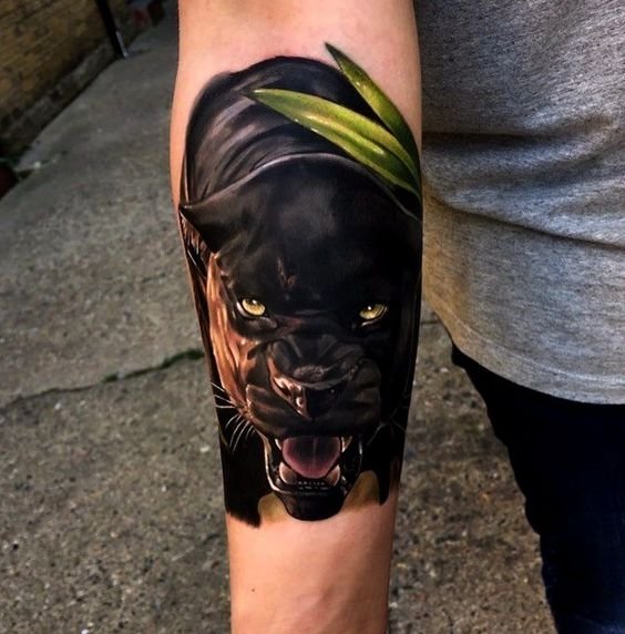 Many people chose a wild cat tattoo under the impression of the superhero movie «Black Panther». The fascinating story has won millions of fans around the world. The desire for justice, the desire to do the right thing and not give up, despite the difficulties - the concept of film and body painting.