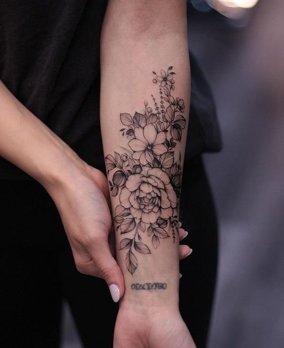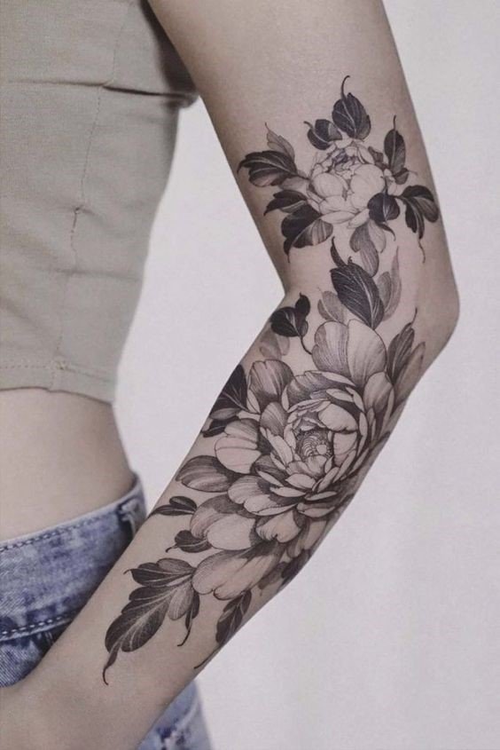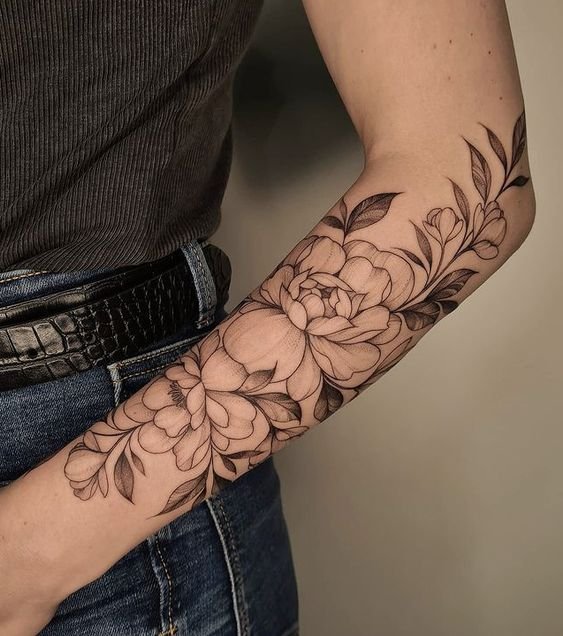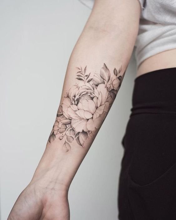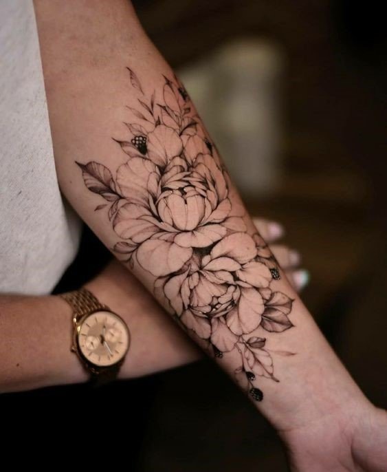 - Forearm peony tattoo: This placement is equally good for men and women. In Ancient Greece, peonies on hands symbolized good health and longevity. This flower is also frequently used as an element of tattoo sleeves;