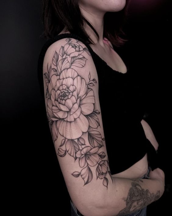 - Peony tattoo on a shoulder: Such a tattoo may serve as a source of additional confidence and self-love. Peony tattoos on shoulders are usually made by people seeking for inner footholds.