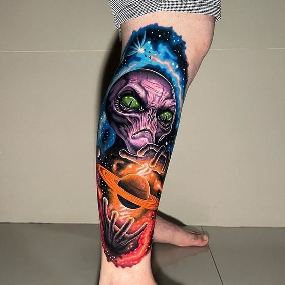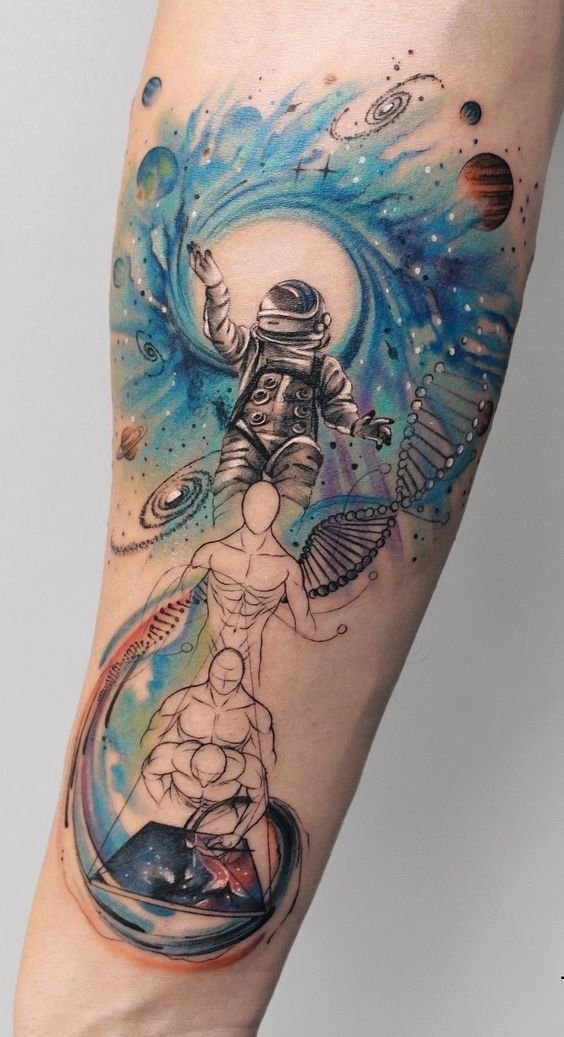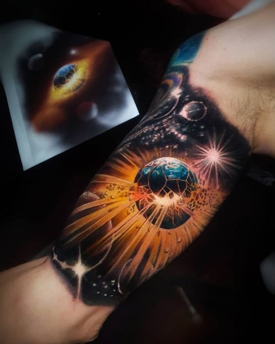 Usually, a space tattoo symbolizes personal success, the desire for exploration and new knowledge.
