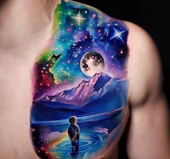 In others, such a body painting is associated with exciting adventures. Common meanings - courage and ambition. Cosmic tattoos are made in honor of lovers to show how important a loved one is in life.