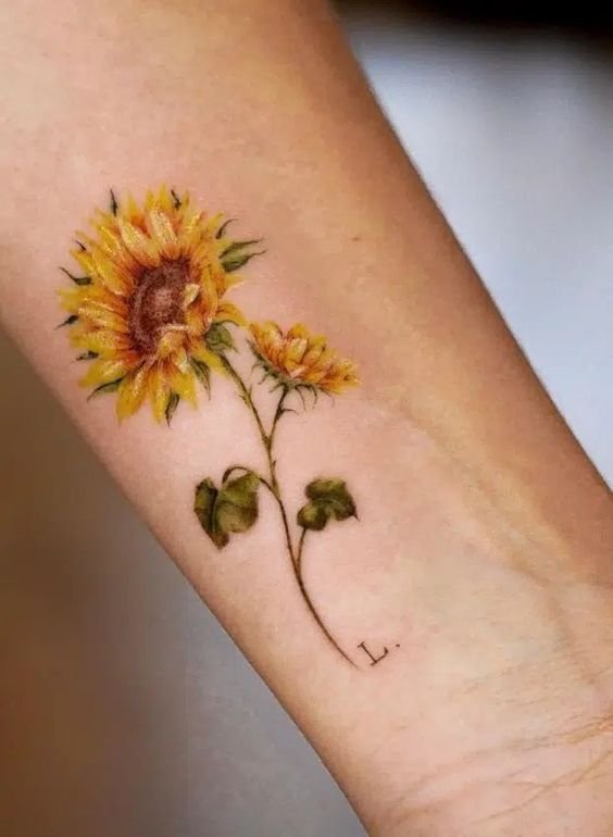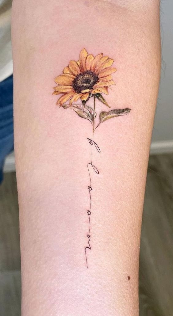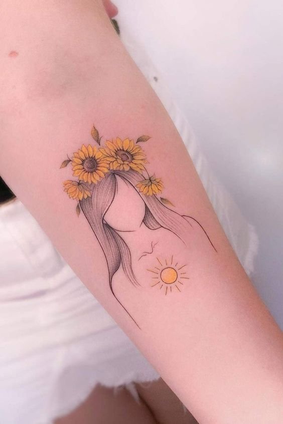 The history of the flower’s symbolism begins in the time of ancient Greece. In ancient Greek mythology, the aquatic nymph Clitia, unrequitedly in love with the god Apollo, was constantly watching his golden chariot sweep through the sky and turned into a sunflower. The flower’s special feature is the turn of the bud towards the sun. Both Clitius followed Apollo’s chariot and the sunflower followed the celestial light. Reasons for getting a sunflower tattoo: