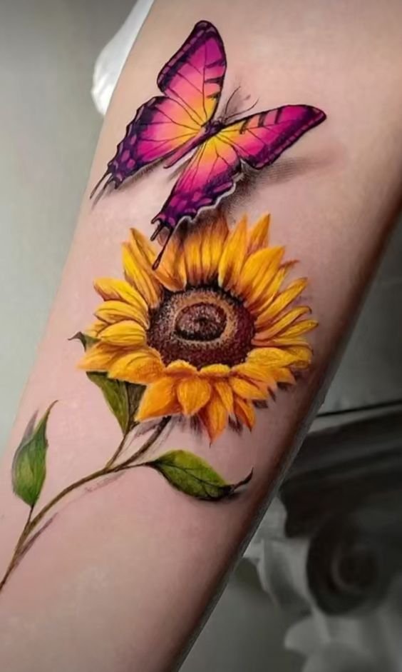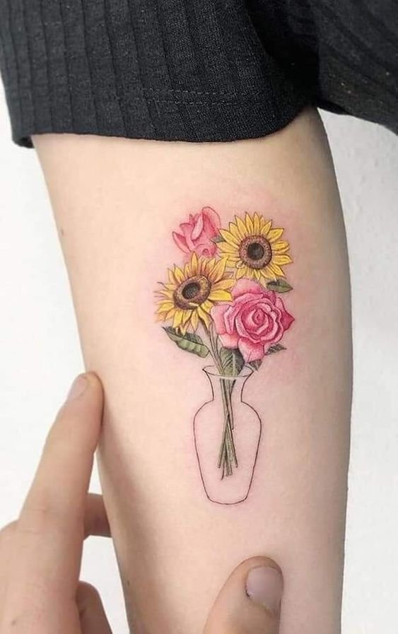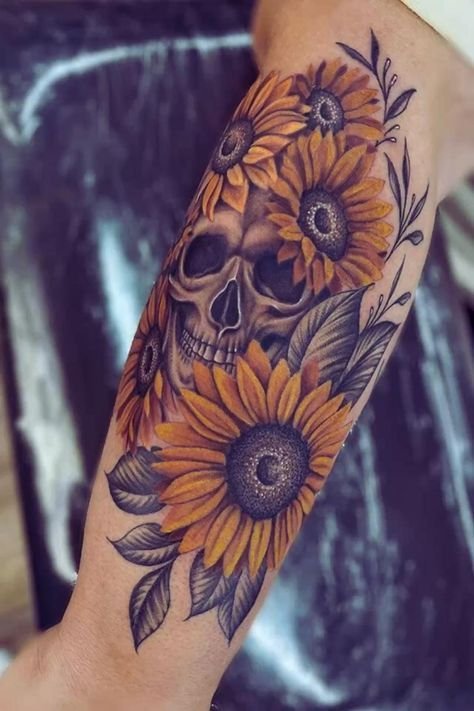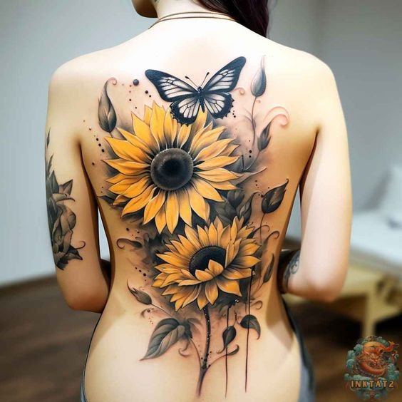 Sunflower tattoo is one of the popular body art options, which is associated with aesthetic appearance and symbolism.