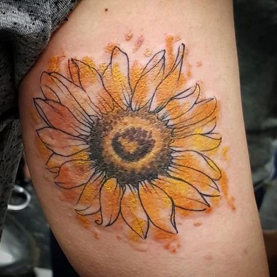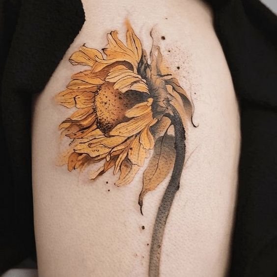The sunflower tattoo carries a warm, positive message. The drawing is associated with sunlight, joy and good mood. With the help of tattoos share positive emotions, spread around the aura of good and well-being. The artistic image of the flower easily adapts to personal thoughts and feelings. Tattoo a sunflower to always carry a piece of the sun with you.