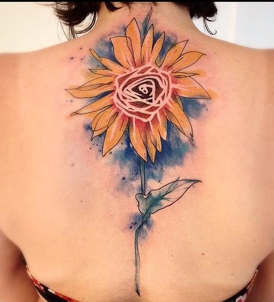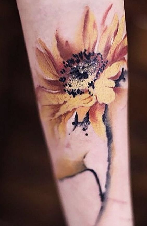 For each owner of the sunflower tattoo reflects the individual idea and meaning. To personalize the body pattern, add details and inscriptions, change the style and traditional colors.