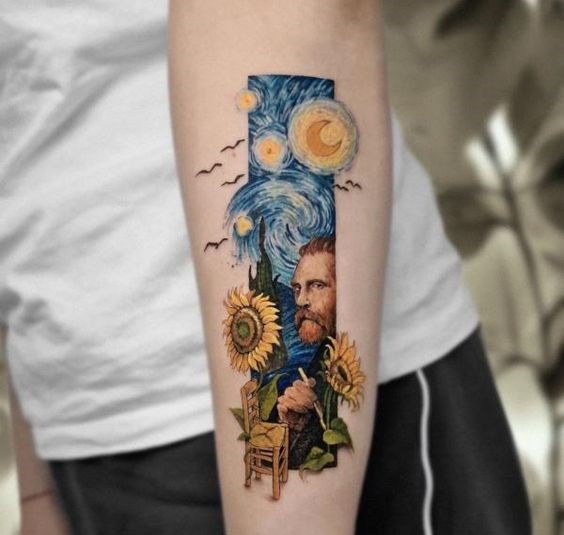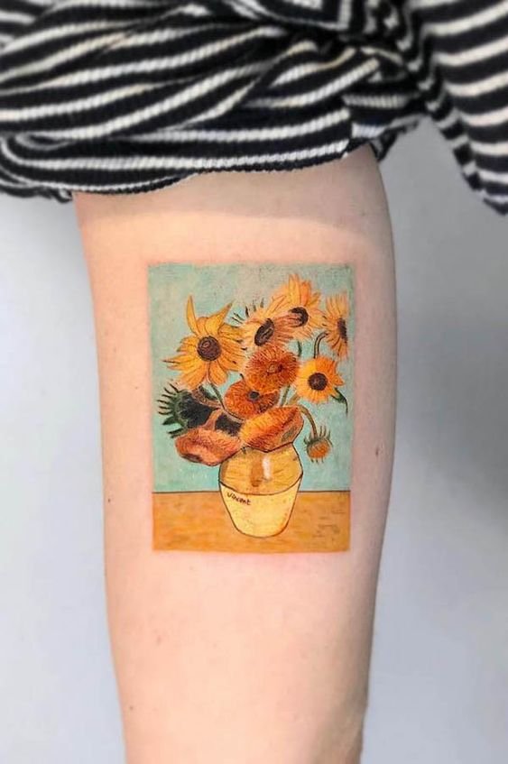 The genius Dutch artist had a special passion for yellow flowers, dedicated two cycles of paintings to sunflower. Van Gogh canvases are an inspiring source of inspiration for tattoo design.