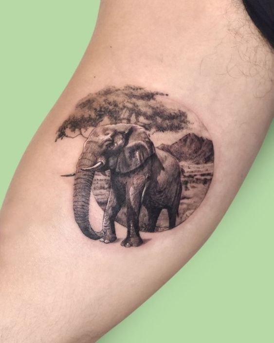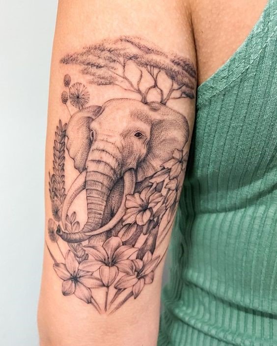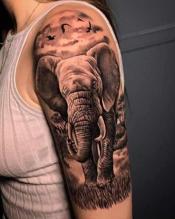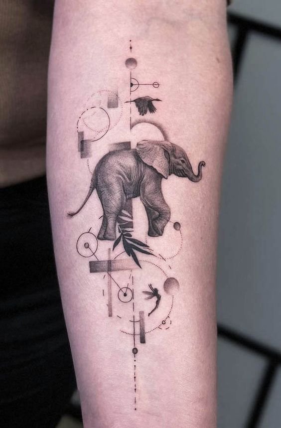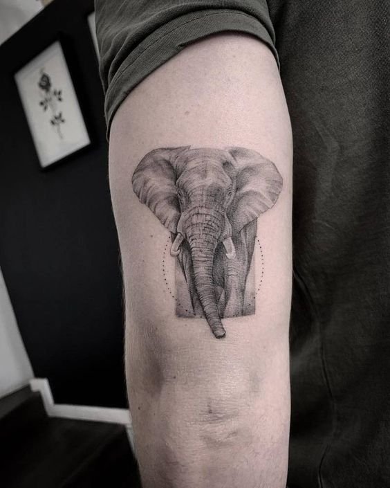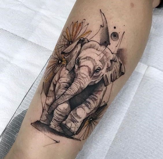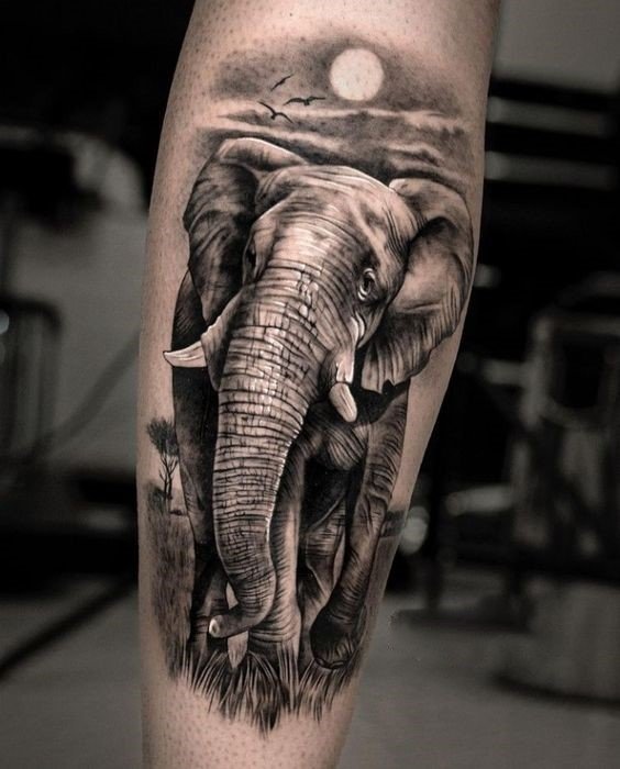 In African culture, the elephant often acts as an intermediary to help resolve animal disputes. In this context, the tattoo represents justice and wisdom. Despite its large size and weight, elephants are graceful and elegant. Talented artists convey the grace and dynamics of a large animal in a drawing.