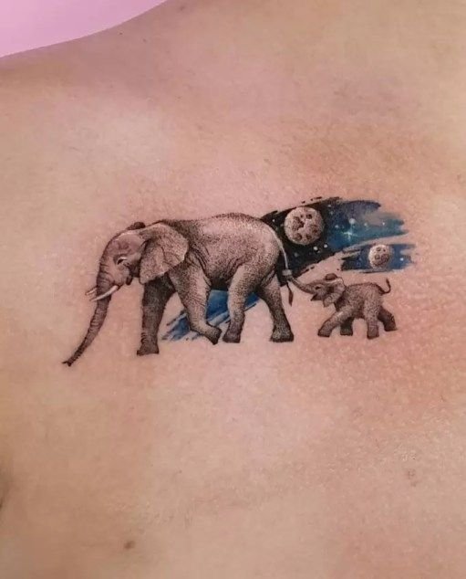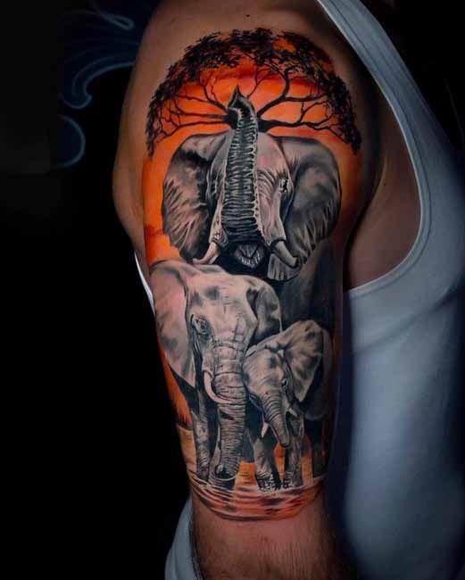 Elephant tattoo is a good solution for people who want to emphasize respect for family values, show mercy, generosity, wisdom and love.
